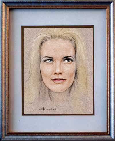 Faye "Bonnie and Clyde" Dunaway 8"x10" light and dark pencil on gray paper in double-matted 11"x14" K-Mart frame.