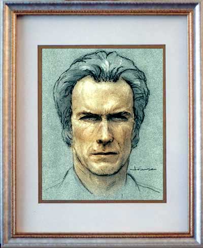 Clint "Dirty Harry" Eastwood 8"x10" colorized pastel on toned paper in double-matted 11"x14" K-Mart frame.