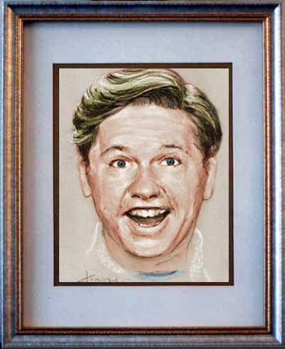 Mickey "Andy Hardy" Rooney 8"x10" light and dark pencil on gray paper in double-matted 11"x14" K-Mart frame.
