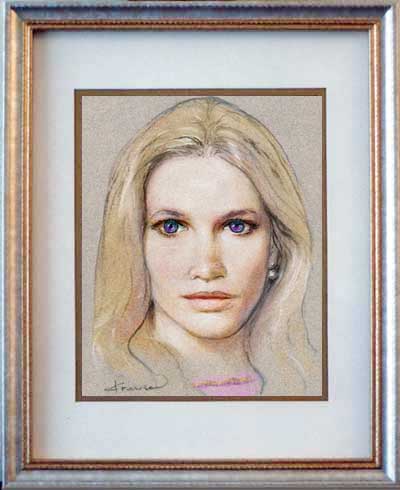 Lynn "Guiding Light" Deerfield 8"x10" light and dark pencil on gray paper in double-matted 11"x14" K-Mart frame.