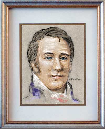 William Clark of Lewis and Clark 8"x10" light and dark pencil on gray paper in double-matted 11"x14" K-Mart frame.