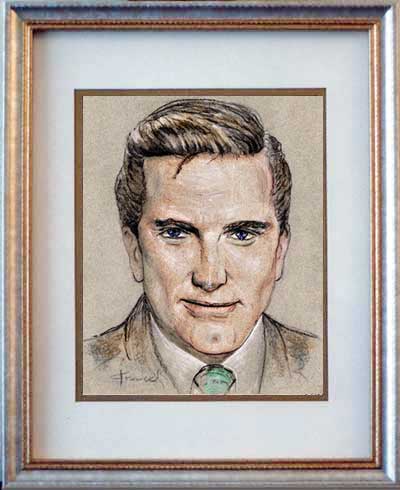 Kirk Douglas of "The Hole In The Chin Gang" 8"x10" light and dark pencil on gray paper in double-matted 11"x14" K-Mart frame.