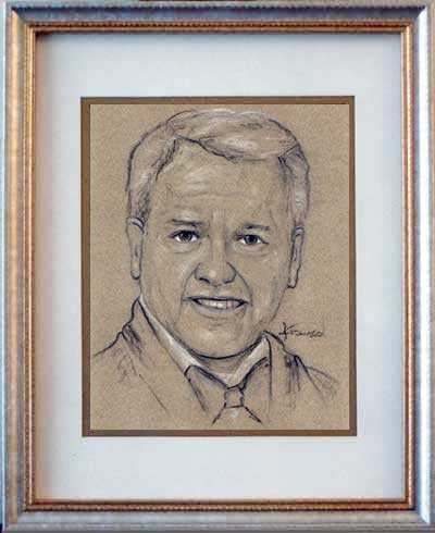Mickey "Mr. Hollywood" Rooney 8"x10" light and dark pencil on gray paper in double-matted 11"x14" K-Mart frame.