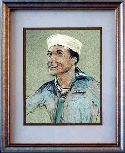 Gene Kelly of Singin' In The Rain 8"x10" colorized pastel on toned paper in double-matted 11"x14" K-Mart frame.