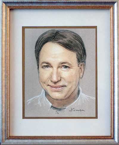 John Ritter of Three's Company 8"x10" light and dark pencil on gray paper in double-matted 11"x14" K-Mart frame.