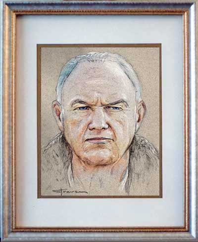 Gene Hackman of The French Connection 8"x10" light and dark pencil on gray paper in double-matted 11"x14" K-Mart frame.