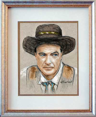 Gary Cooper of High Noon 8"x10" light and dark pencil on gray paper in double-matted 11"x14" K-Mart frame.