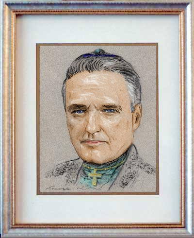 Dennis Hopper of Easy Rider 8"x10" light and dark pencil on gray paper in double-matted 11"x14" K-Mart frame.