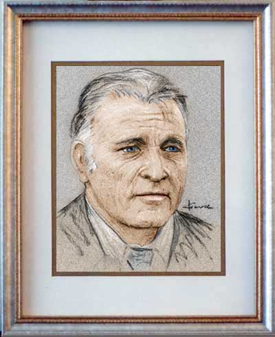 Richard Burton of The Robe and Elizabeth Taylor 8"x10" light and dark pencil on gray paper in double-matted 11"x14" K-Mart frame.