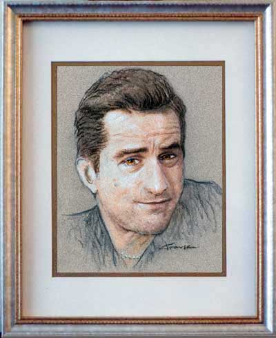 Robert DeNiro of the "Ain't Life A Bitch" crowd 8"x10" light and dark pencil on gray paper in double-matted 11"x14" K-Mart frame.
