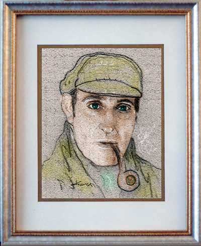 Sherlock Holmes ala Basil Rathbone 8"x10" light and dark pencil on gray paper in double-matted 11"x14" K-Mart frame.