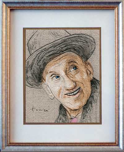 Jimmy "the shnoz" Durante of "Goodnight Miss Calabash, wherever you are!" 8"x10" light and dark pencil on gray paper in double-matted 11"x14" K-Mart frame.