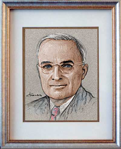 Harry "the buck stops here" Truman 8"x10" colorized pastel on toned paper in double-matted 11"x14" K-Mart frame.