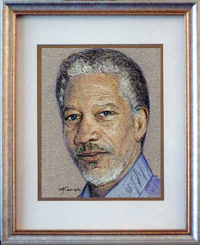 Morgan "Shawshank Redemption" Freeman 8"x10" light and dark pencil on gray paper in double-matted 11"x14" K-Mart frame.