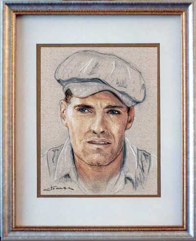 Henry Fonda of "Grapes of Wrath" 8"x10" light and dark pencil on gray paper in double-matted 11"x14" K-Mart frame.