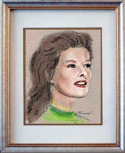 Katherine Hepburn of Bringing Up Baby 8"x10" colorized pastel and on gray paper in double-matted 11"x14" K-Mart frame.