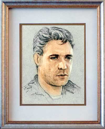 Russell Crowe of "Cinderella Man" 8"x10" colorized pastel and on gray paper in double-matted 11"x14" K-Mart frame.