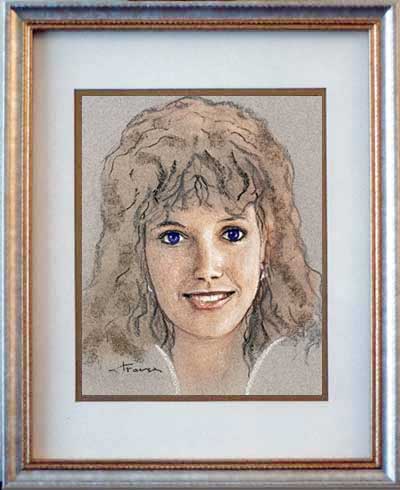 Jeniffer Beals of "Flashdance" 8"x10" colorized pastel and on gray paper in double-matted 11"x14" K-Mart frame.