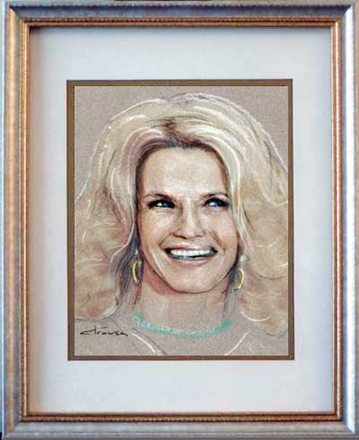 Angie Dickinson of "Police Woman" 8"x10" colorized pastel and on gray paper in double-matted 11"x14" K-Mart frame.