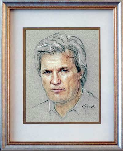 Jeff Bridges of "The Baker Boys" 8"x10" colorized pastel and on gray paper in double-matted 11"x14" K-Mart frame.