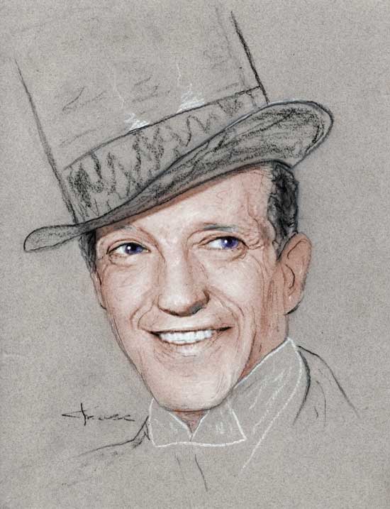 Fred Astaire of "Daddy Longlegs" 8"x10" colorized pastel and on gray paper in double-matted 11"x14" Top Hat frame.
