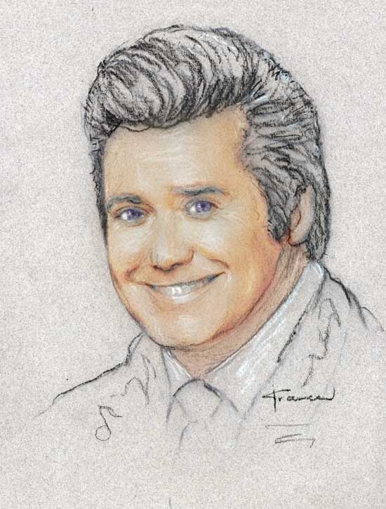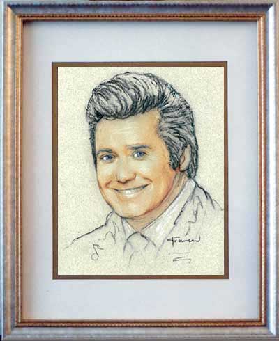 Wayne Newton of Las Vegas 8"x10" colorized pastel and on gray paper in double-matted 11"x14" Las Vegas frame.