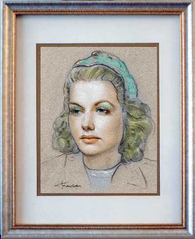 Ann Sheridan of "Angels With Dirty Faces" 8"x10" colorized pastel on gray paper in double-matted 11"x14" Bowery frame.