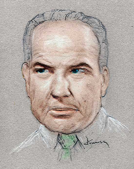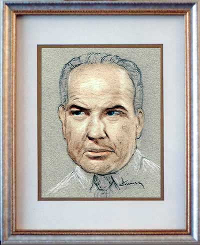 Broderick Crawford of "Highway Patrol" 8"x10" colorized pastel on gray paper in double-matted 11"x14" Smokey frame.