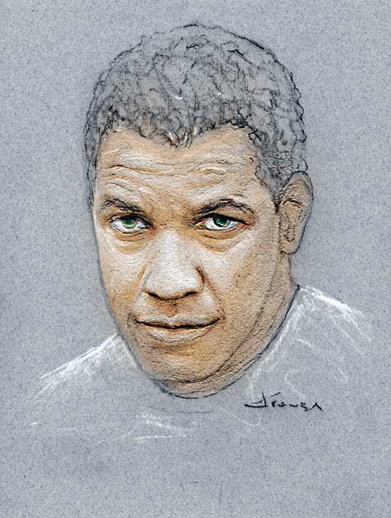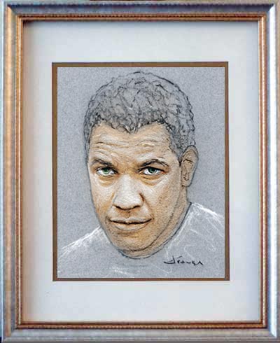Denzel Washington of "The Hurricane" 8"x10" colorized pastel on gray paper in double-matted 11"x14" Jailhouse frame.