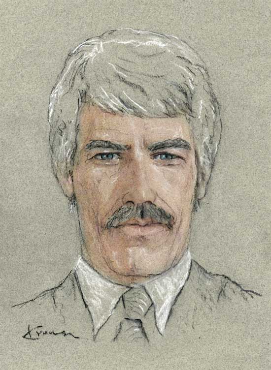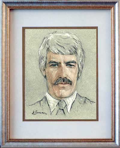 James Coburn of "In Like Flint" 8"x10" colorized pastel on gray paper in double-matted 11"x14" Cowboy frame.