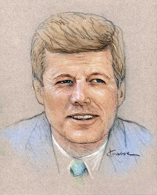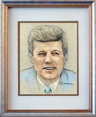 John Kennedy of "The American Presidency" 8"x10" colorized pastel on gray paper in double-matted 11"x14" CEO frame.