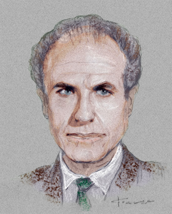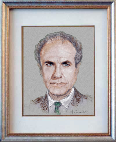 Barry Morse of Lt. Gerard of The Fugitive 8"x10" colorized pastel on gray paper in double-matted 11"x14" budget frame.