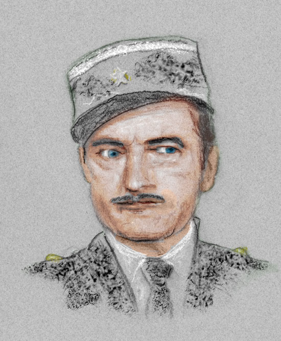 Claude Raines of "Casablanca" 8"x10" colorized pastel on gray paper in double-matted 11"x14" budget frame.
