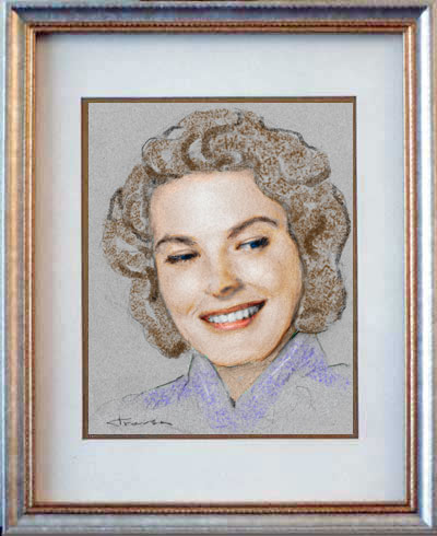 Ingrid Bergman of "Casablanca" 8"x10" colorized pastel on gray paper in double-matted 11"x14" budget frame.
