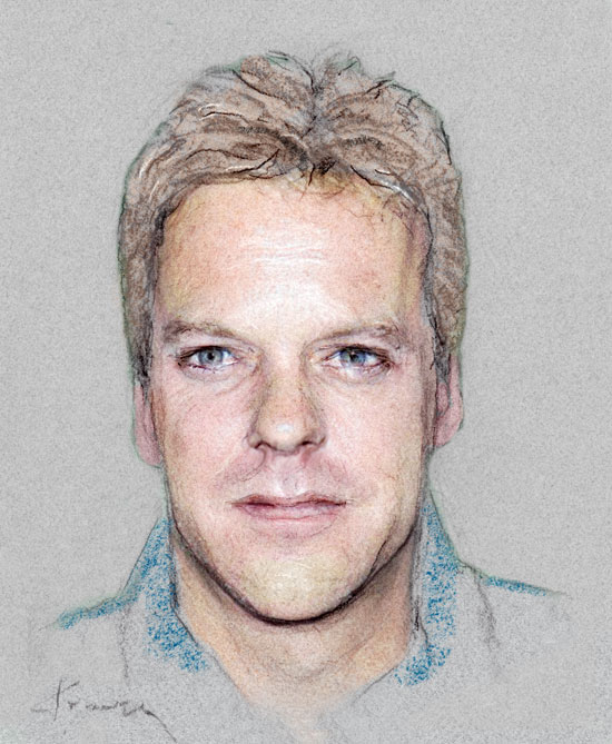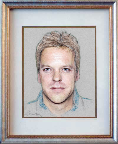 Kieffer Sutherland of "24" 8"x10" colorized pastel on gray paper in double-matted 11"x14" budget frame.