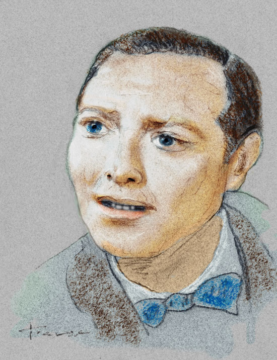 Peter Lorre of "Casablanca" 8"x10" colorized pastel on gray paper in double-matted 11"x14" budget frame.