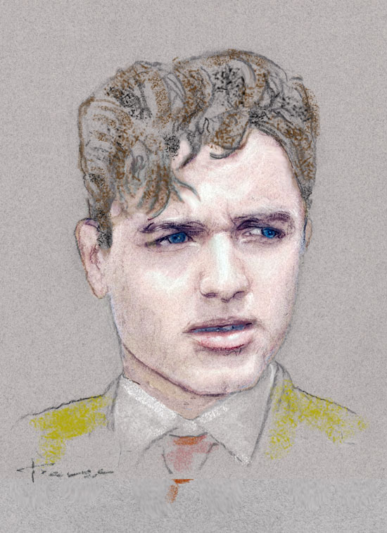 Sal Mineo of "Rebel Without A Cause" 8"x10" colorized pastel on gray paper in double-matted 11"x14" budget frame.