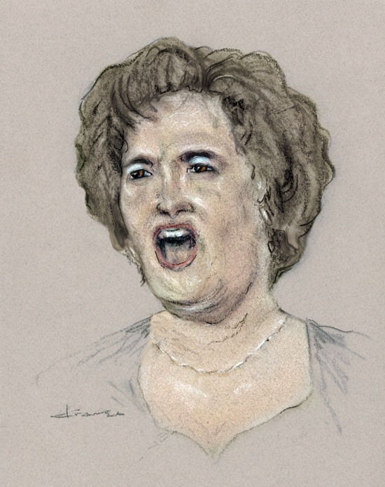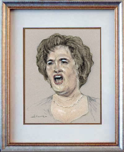Susan Boyle "She Dreamed a Dream" 8"x10" colorized pastel on gray paper in double-matted 11"x14" budget frame.