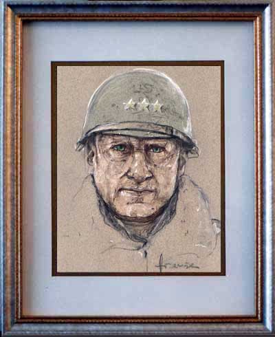 George C. "Patton" Scott 8"x10" light and dark pencil on gray paper in double-matted 11"x14" K-Mart frame.