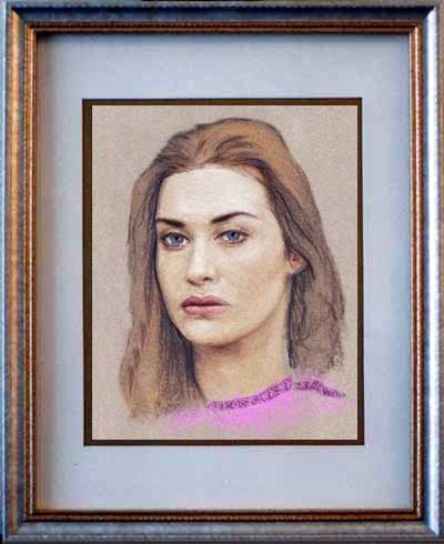 Kate "Titanic" Winslet 8"x10" light and dark pencil on gray paper in double-matted 11"x14" K-Mart frame.