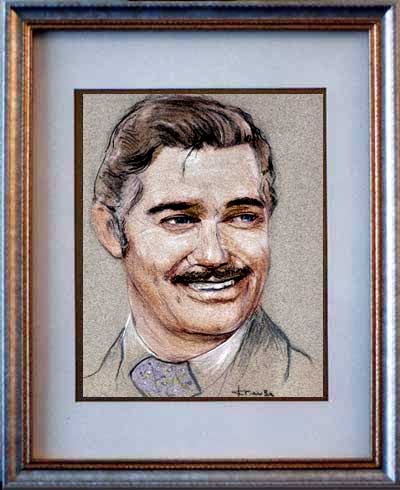 Clark "Gone With The Wind" Gable 8"x10" light and dark pencil on gray paper in double-matted 11"x14" K-Mart frame.