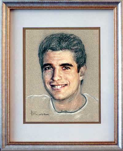 John "forever junior" Kennedy 8"x10" light and dark pencil on gray paper in double-matted 11"x14" K-Mart frame.