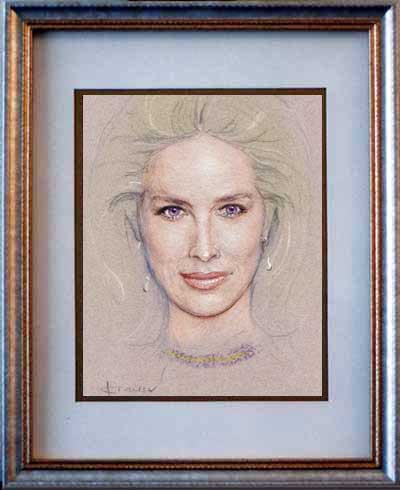 Sharon "Basic Instinct" Stone 8"x10" light and dark pencil on gray paper in double-matted 11"x14" K-Mart frame.