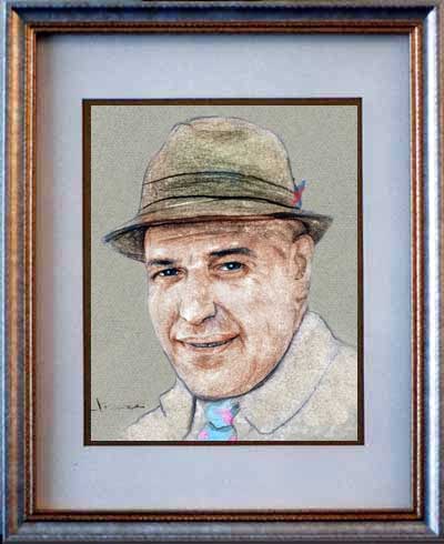 Telly "Kojack" Savalas 8"x10" light and dark pencil on gray paper in double-matted 11"x14" K-Mart frame.
