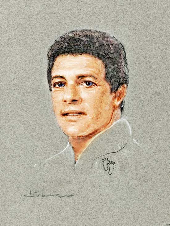 Frankie "beach party" Avalon 8"x10" colorized pastel pencil on gray paper in double-matted 11"x14" Funicello frame.
