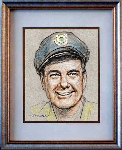 Arthur "Minutemaid" Godfrey 8"x10" light and dark pencil on gray paper in double-matted 11"x14" K-Mart frame.