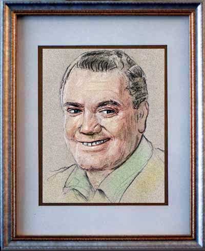 Earnest "Marty" Borgnine 8"x10" light and dark pencil on gray paper in double-matted 11"x14" K-Mart frame.
