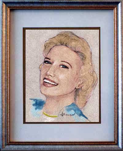 Dinah "See the USA" Shore 8"x10" light and dark pencil on gray paper in double-matted 11"x14" K-Mart frame.
