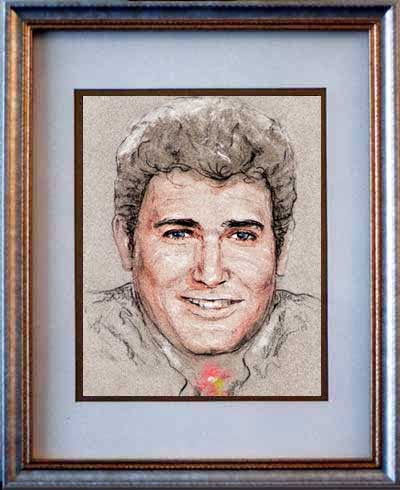 Michael "Little Joe" Landon 8"x10" light and dark pencil on gray paper in double-matted 11"x14" K-Mart frame.