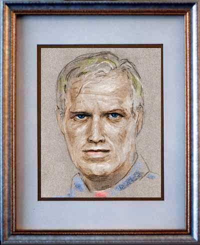 Richard "Machinegun" Widmark 8"x10" light and dark pencil on gray paper in double-matted 11"x14" K-Mart frame.
